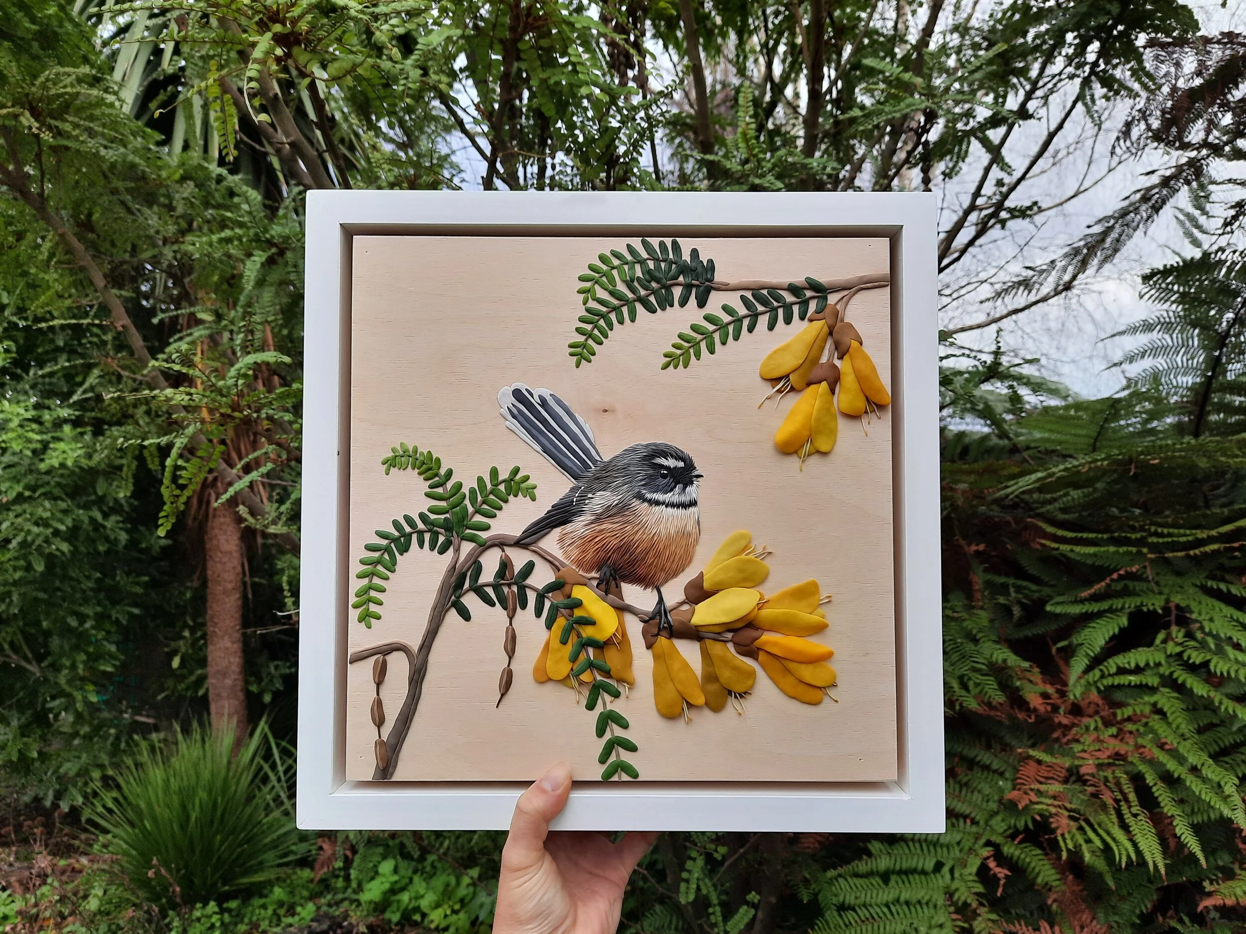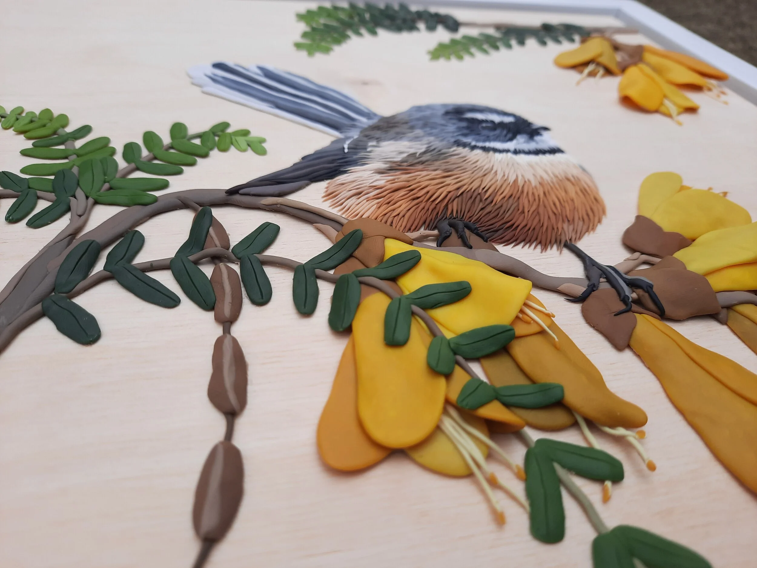 "Our friendly Neighbour" was inspired by the incredible friendliness of our favourite Neighbours, the New Zealand Native Fantail or Pīwakawaka!